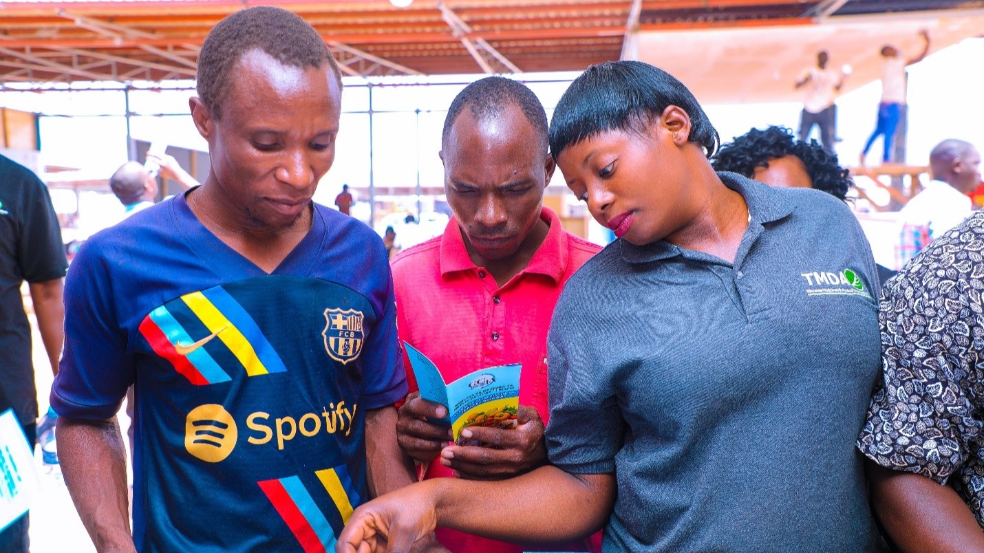 Wananchi na wadau mbalimbali wakisoma majarida na vipeperushi katika banda la Mamlaka ya Maabara ya Mkemia Mkuu wa Serik...